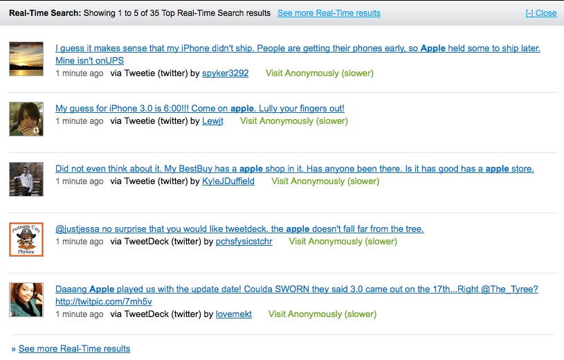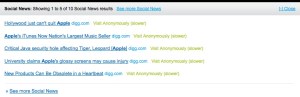 Also interesting is that a component of each search includes a real-time element – from Twitter and social news from Digg. The real time search element is useful as it provides another option to scoopler.