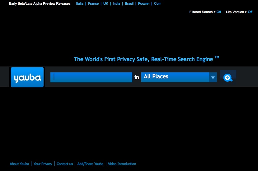 Currently the site says it’s only an early Beta / Late Alpha preview release so more work / changes can be expected. Hopefully these will include Help files explaining what the Lite search is supposed to do and what a Filtered search actually filters. Also, what syntax is acceptable – to refine searches. Does Boolean searching actually work, for example? On my brief tests it seemed to – as did phrase searching i.e. putting search terms in quotes. What about other options – could any of the advanced search options from Exalead be included. And will the site cover more countries, than the current small number (Italy, France, UK, India, Brazil, Russia and the .com site)? Yauba promises to cover more countries – I’m just surprised that there is no Chinese or German version as I would have expected these before the Italian version. I guess the Yauba team have Italian speakers but currently no Chinese speakers.