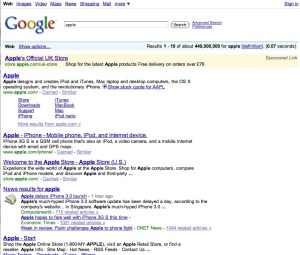 Clicking on Apple (automobile) gives a number of results – not all directly relevant but some which were. There is also a brief encyclopedia type entry at the top of the page: